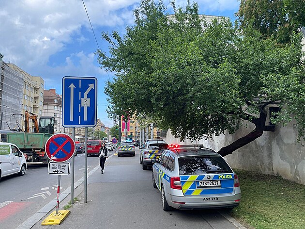 V nákupním středisku Flora zasahují policisté kvůli hrozbě uložené výbušniny. (21. května 2025)