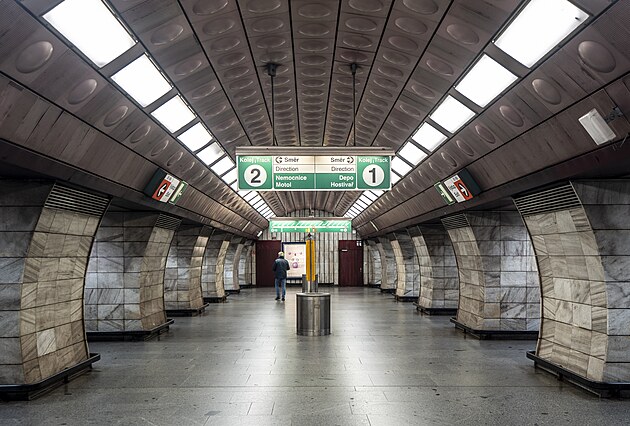 Prostory stanice metra A Flora, která se od února příštího roku uzavře kvůli generální opravě. (8. října 2025)