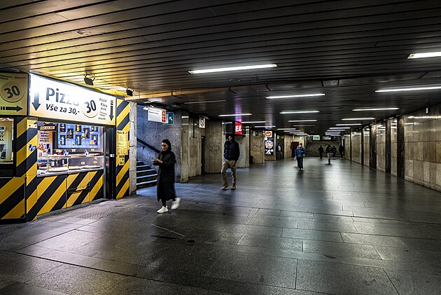 Prostory stanice metra A Flora, která se od února příštího roku uzavře kvůli generální opravě. (8. října 2025)