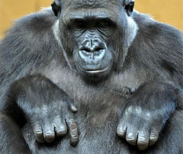Moja jakoby ukazovala na svoje dmoucí se břicho (Cabárceno, březen 2013)