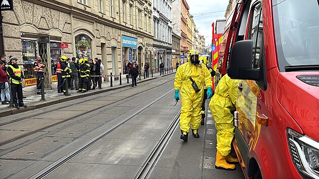 Zásah hasičské speciální jednotky v Praze na Andělu kvůli neznámé látce. (20. května 2025)
