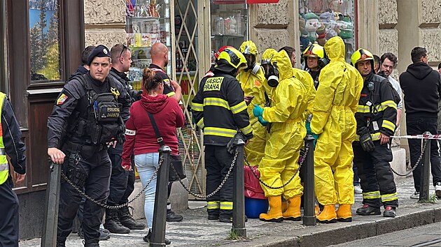 Zásah hasičské speciální jednotky v Praze na Andělu kvůli neznámé látce. (20. května 2025)