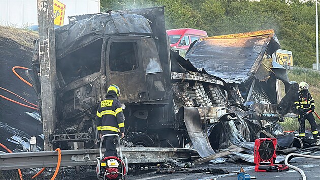 Na Jižní spojce u Štěrbohol vzplál kamion. (30. června 2025)
