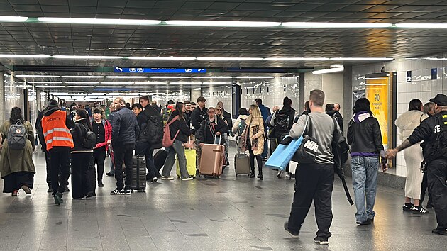 V neděli večer pražská policie evakuovala kvůli podezřelému zavazadlu Hlavní nádrží a přilehlé okolí. (23. března 2025)