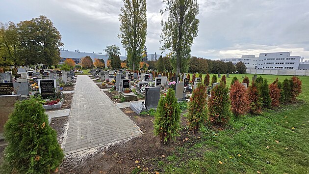 Hřbitov v Mladé Boleslavi mezi halami automobilky Škoda Auto (30. října 2025)