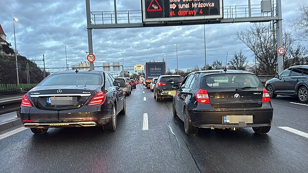 V pražském Bubenečském tunelu se srazilo osm aut. Na místě se tvoří kolony. (8. prosince 2025)
