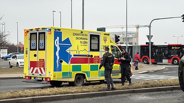 Srážka několika aut zablokovala provoz před obchodním centrem Metropole Zličín v Praze. (21. ledna 2025)