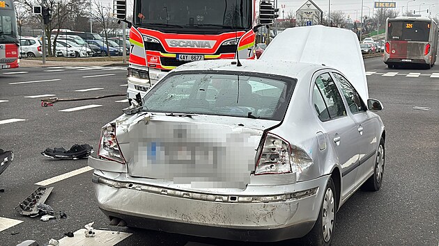 Srážka několika aut zablokovala provoz před obchodním centrem Metropole Zličín v Praze. (21. ledna 2025)