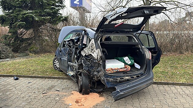 Srážka několika aut zablokovala provoz před obchodním centrem Metropole Zličín v Praze. (21. ledna 2025)