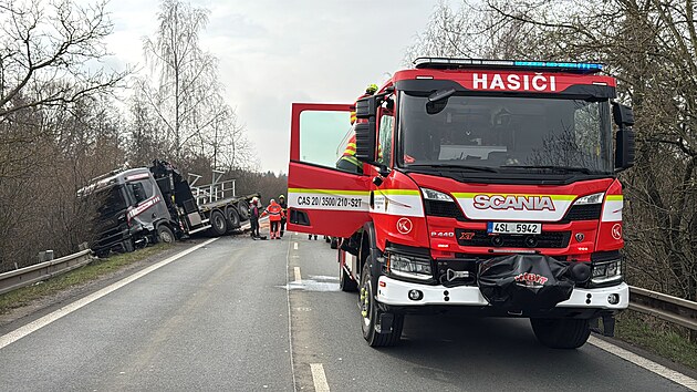 Srážku osobního s nákladním automobilem v Říčanech v ulici Říčanská nepřežila řidička osobáku (26. března 2025)