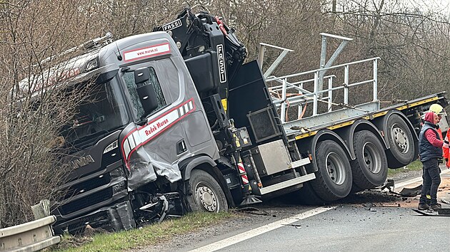 Srážku osobního s nákladním automobilem v Říčanech v ulici Říčanská nepřežila řidička osobáku (26. března 2025)