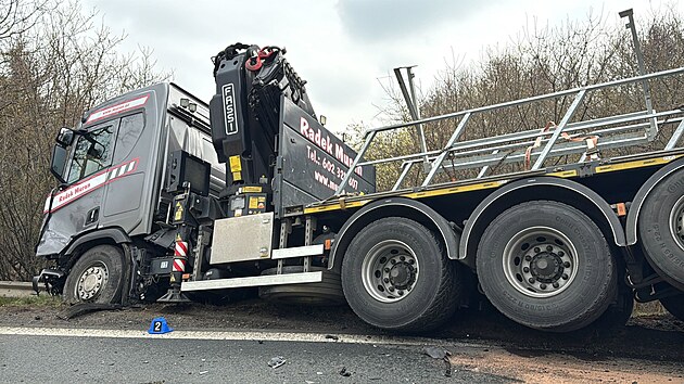 Srážku osobního s nákladním automobilem v Říčanech v ulici Říčanská nepřežila řidička osobáku (26. března 2025)