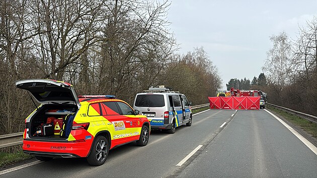 Srážku osobního s nákladním automobilem v Říčanech v ulici Říčanská nepřežila řidička osobáku (26. března 2025)