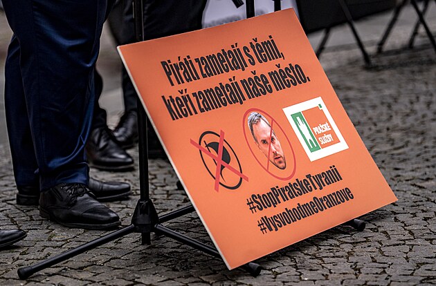 Před budovou pražského magistrát, v níž dnes zasedají zastupitelé, demonstrují od rána zaměstnanci Pražských služeb. (27. března 2025)