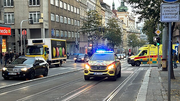 Tramvaj v Ječné ulici srazila dva chodce. (1. listopadu 2024)