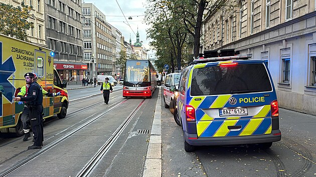 Tramvaj v Ječné ulici srazila dva chodce. (1. listopadu 2024)