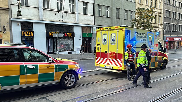 Tramvaj v Ječné ulici srazila dva chodce. (1. listopadu 2024)