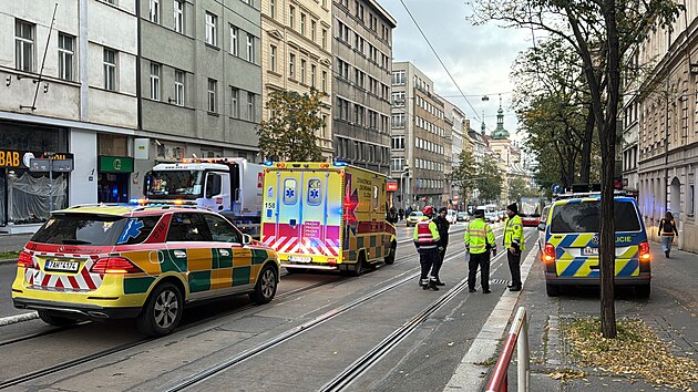 Tramvaj v Ječné ulici srazila dva chodce. (1. listopadu 2024)