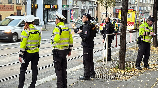 Tramvaj v Ječné ulici srazila dva chodce. (1. listopadu 2024)