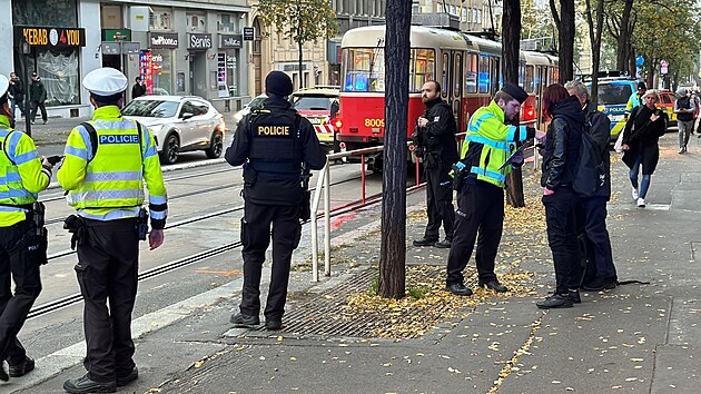 Tramvaj v Ječné ulici srazila dva chodce. (1. listopadu 2024)