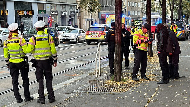 Tramvaj v Ječné ulici srazila dva chodce. (1. listopadu 2024)