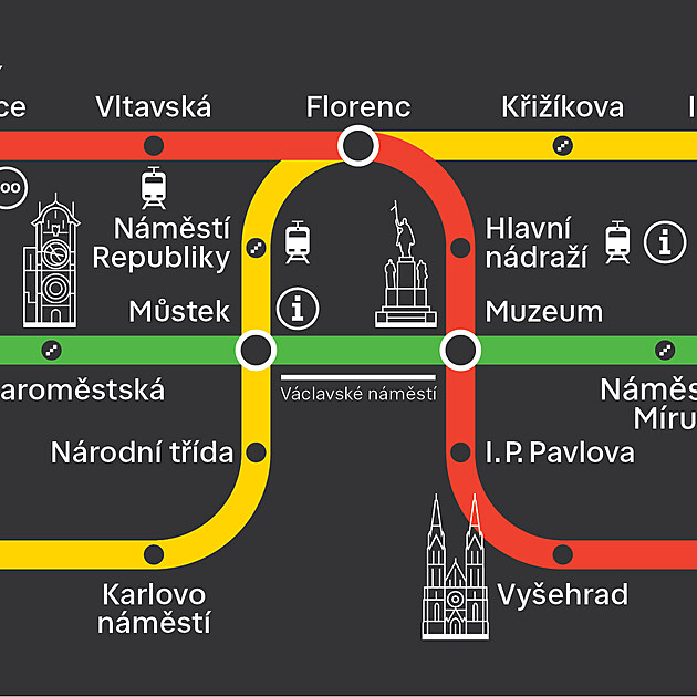 Nová schémata linek pražského metra, tzv. jezevčíci (prosinec 2024)