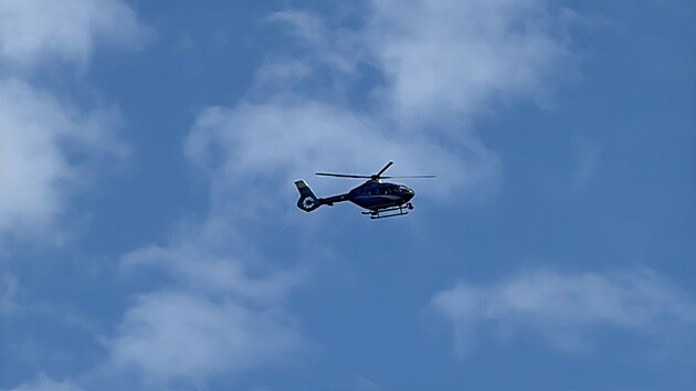 Policisté dnes po poledni vyjížděli do firmy v Jílovišti u Prahy k postřelenému muži, zajistili zbraň a zadrželi podezřelého, po kterém pátrali vrtulníkem. (11. dubna 2025)