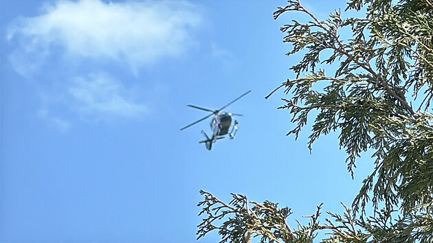 Policisté dnes po poledni vyjížděli do firmy v Jílovišti u Prahy k postřelenému muži, zajistili zbraň a zadrželi podezřelého, po kterém pátrali vrtulníkem. (11. dubna 2025)