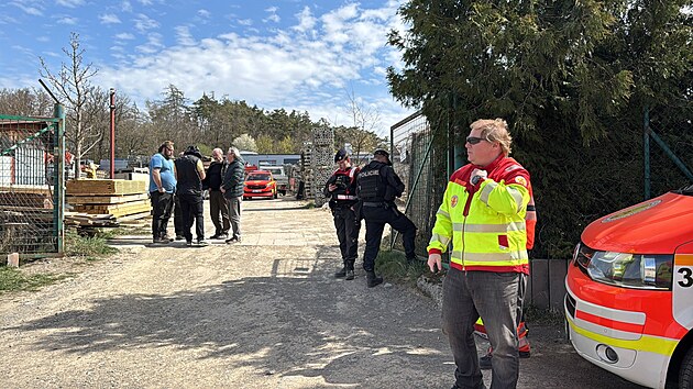 Policisté dnes po poledni vyjížděli do firmy v Jílovišti u Prahy k postřelenému muži, zajistili zbraň a zadrželi podezřelého. (11. dubna 2025)