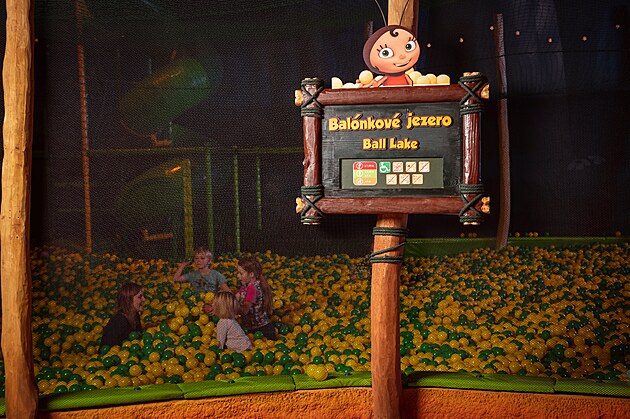 Vstup do balónkového jezera je výškově omezen, děti nad 1,4 metru přenechají tuto atrakci menším.