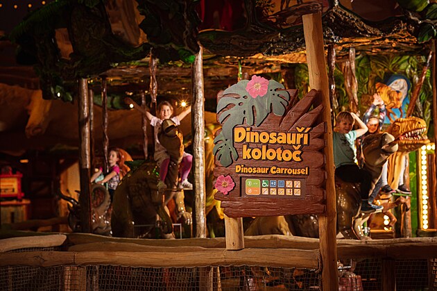 Dinosauří kolotoč je přístupný dětem od dvou let a nabízí ke svezení 42 míst.