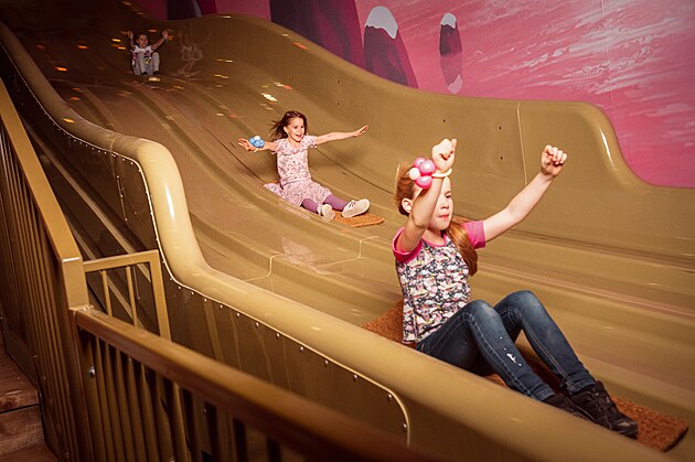 Vikova skluzavka je vysoká devět metrů a pro děti má čtyři dráhy.