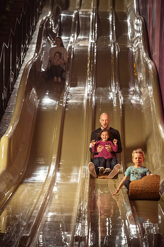 Vikova skluzavka je vysoká devět metrů a pro děti má čtyři dráhy.