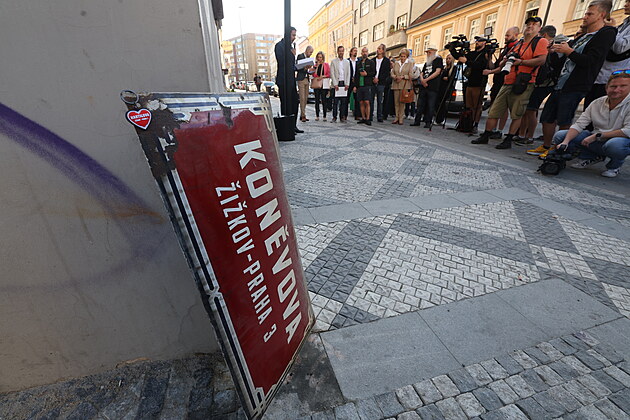 Odhalení nové uliční cedule u příležitosti přejmenování Koněvovy ulice na Hartigovu (2. října 2023)