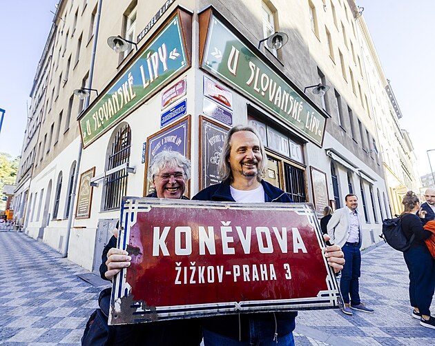 Odhalení nové uliční cedule u příležitosti přejmenování Koněvovy ulice na Hartigovu (2. října 2023)