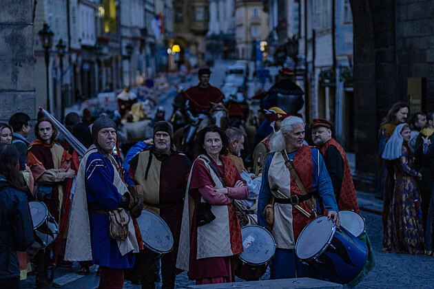 668. výročí položení základního kamene Karlova mostu. Kostýmovaný průvod krále a císaře Karla IV. s chotí. (9. července 2025)