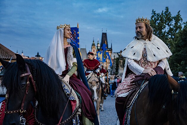668. výročí položení základního kamene Karlova mostu. Kostýmovaný průvod krále a císaře Karla IV. s chotí. (9. července 2025)
