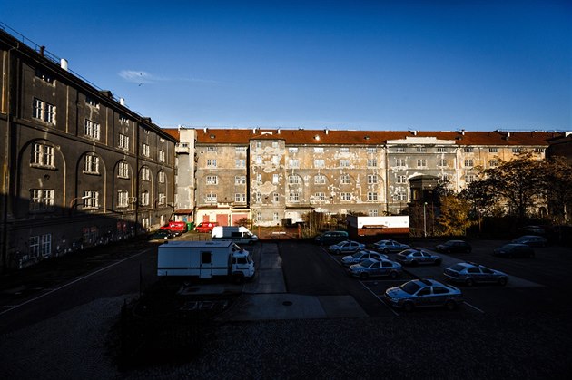 Pohled do dvora, kde je dnes parkoviště policie.
