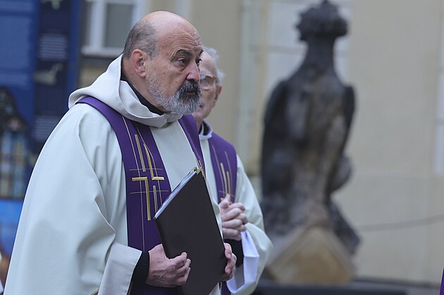 Tomáš Halík míří do katedrály svatého Víta, Václava a Vojtěcha na poslední rozloučení s Karlem Schwarzenbergem. (9. prosince 2023)