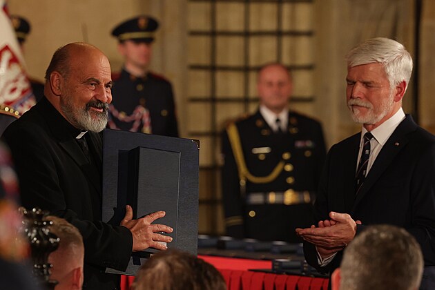 Tomáš Halík převzal od prezidenta Petra Pavla Tomáše Garrigua Masaryka 1. třídy. (28. října 2023)