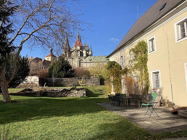 Klášterní zahradě tvoří kulisu chrám sv. Bartoloměje, který postavil Petr Parléř.