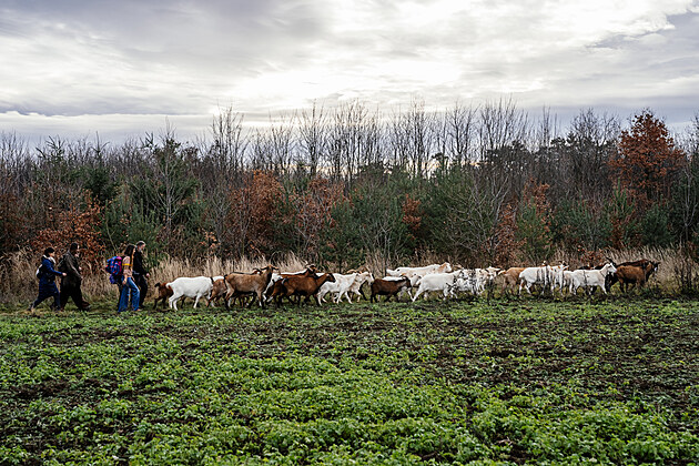 Spolek Pražská pastvina spolu s dobrovolníky hnal stádo koz na novou pastvinu.