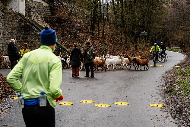 Spolek Pražská pastvina spolu s dobrovolníky hnal stádo koz na novou pastvinu.