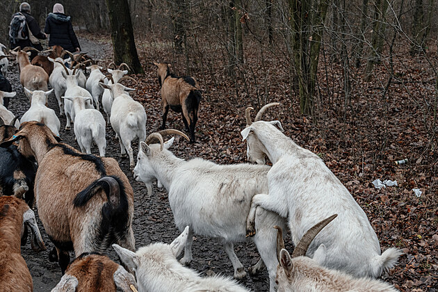 Spolek Pražská pastvina spolu s dobrovolníky hnal stádo koz na novou pastvinu.