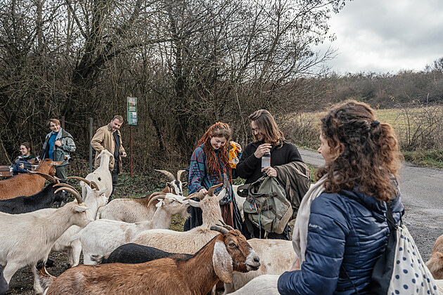 Spolek Pražská pastvina spolu s dobrovolníky hnal stádo koz na novou pastvinu.