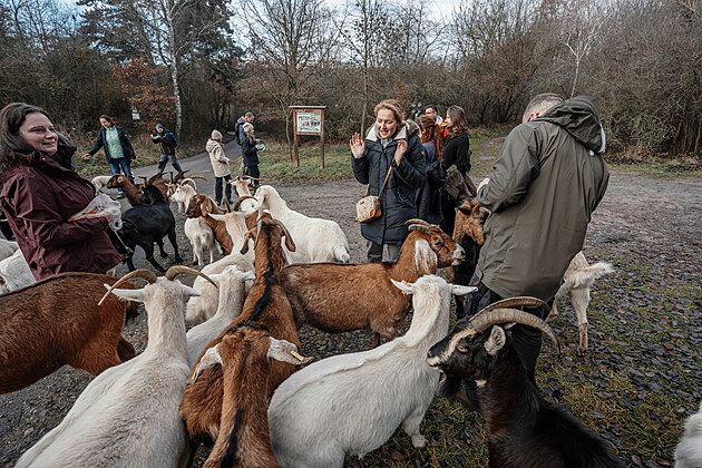Spolek Pražská pastvina spolu s dobrovolníky hnal stádo koz na novou pastvinu.