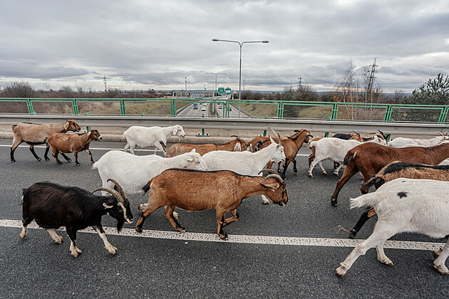 Spolek Pražská pastvina spolu s dobrovolníky hnal stádo koz na novou pastvinu.