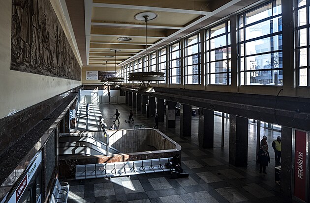Pohled z bývalé hospody Tankovny, dříve Oáza. Také vstup do budovy smíchovského nádraží. (21. března 2025)