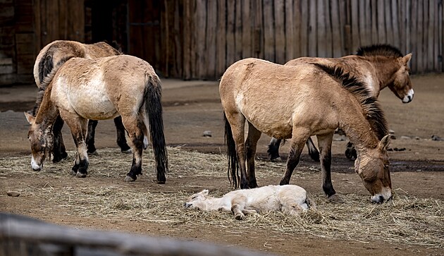 Před křestem Dagina narozená 27. února 2025 odpočívala na hromádce sena u své matky, křest už si užila na všech čtyřech.