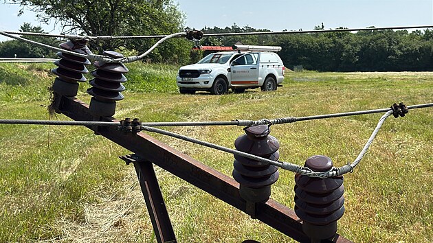 Traktor u Rohozce při kolizi na poli porazil sloup elektrického vedení. Do stržených drátů následně nejela motorka. (12. června 2025)